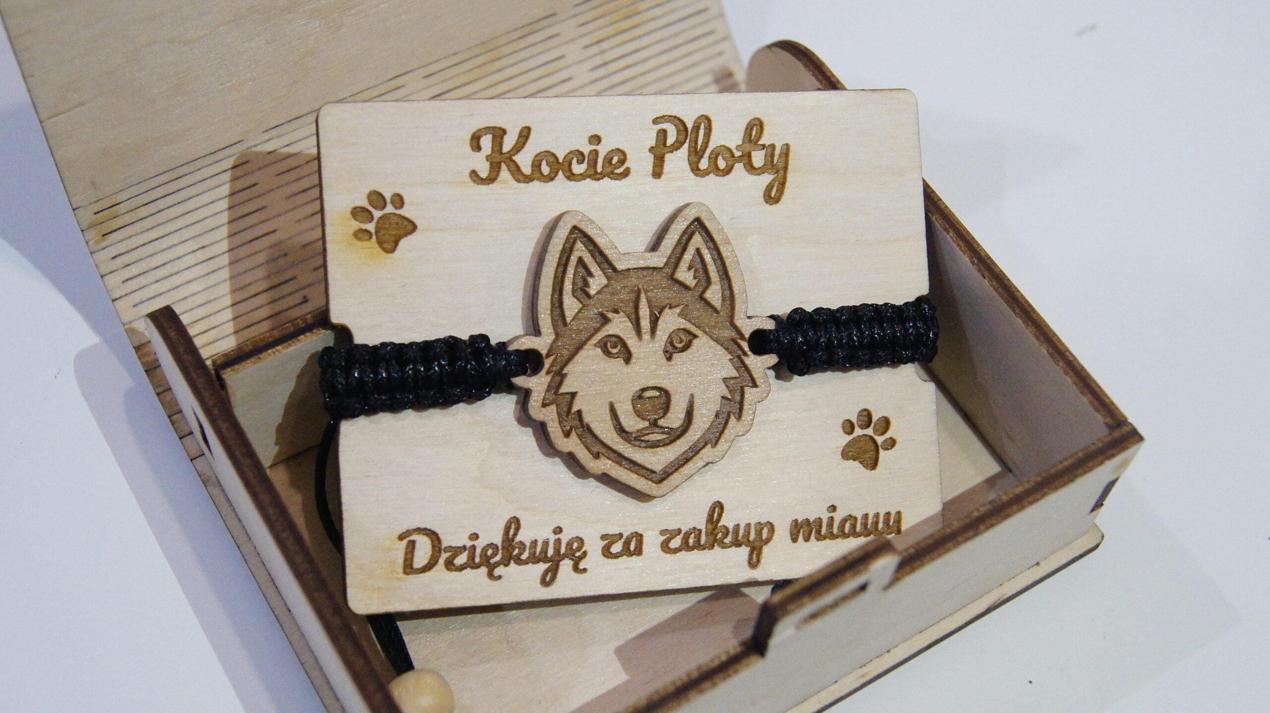 Bransoletka z huskym to doskonałe połączenie stylu i funkcjonalności. Wykonana z wysokiej jakości drewna, starannie szlifowanego, aby zapewnić trwałość i komfort noszenia. Ręcznie rysowany motyw husky, przedstawiony w dynamicznej pozie, oddaje przygodowego ducha tej rasy. Ciepły, naturalny odcień drewna doskonale podkreśla wyjątkowy charakter bransoletki, co czyni ją idealnym dodatkiem zarówno do codziennych, jak i bardziej eleganckich stylizacji.